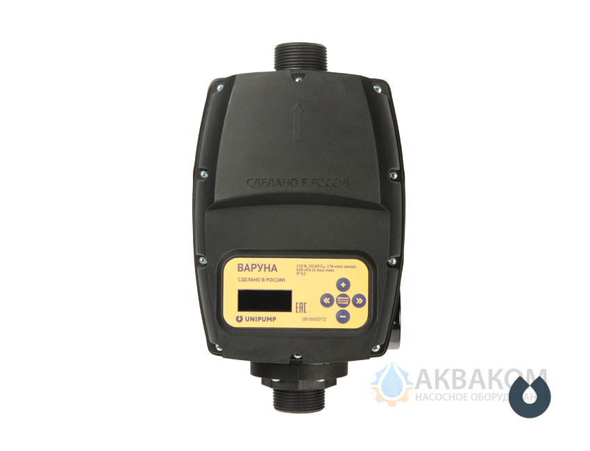 Частотный преобразователь UNIPUMP ВАРУНА — электронный блок, автоматически управляющий функциями остановки и пуска двигателя однофазного насоса мощностью до 2,2 кВт, при максимальной номинальной частоте до 50 Гц. Частотник модулирует частоту (Гц) входного тока двигателя насоса, изменяя скорость его вращения, в зависимости от потребности воды в системе. При этом давление в системе поддерживается на одном, заданном пользователем уровне, а мощность, потребляемая двигателем насоса, пропорциональна величине потока расходуемой воды, что позволяет существенно экономить электроэнергию при постоянно изменяющемся водопотреблении в течение суток.